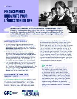 Le Fonds à effet multiplicateur du GPE est un mécanisme financier innovant qui permet d’accroître et de renforcer les investissements dans l’éducation. Il fonctionne aux côtés d’autres sources de financement externes et peut être investi sous forme de financement ou utilisé pour réduire le taux d’intérêt des prêts concessionnels accordés par des banques multilatérales de développement ou des donateurs bilatéraux. Il peut également fonctionner de concert avec d’autres sources non traditionnelles de financement du développement, notamment les capitaux privés.